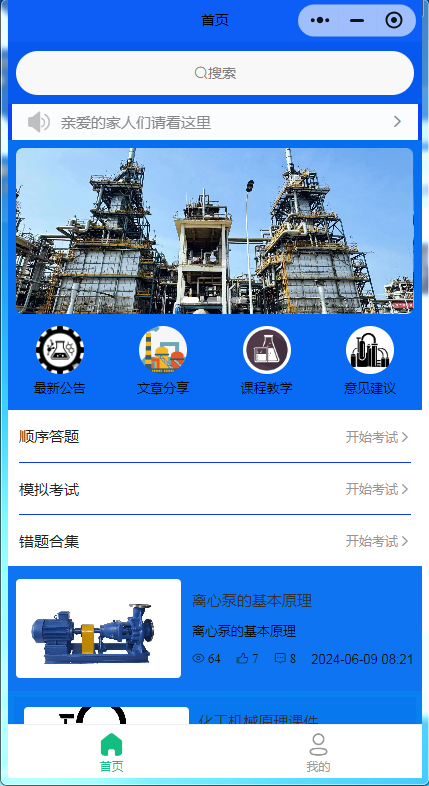 ? ? ? ? ? ?乔光磊,这个有思路有头脑的青年人,他团结和带领丙班成员,迅速投入到”安全保生产、培训促提升“这场挑战中来。他清楚职工基础薄弱,需要从基础知识学习开始,一点点积累,为了提高学习效率,增加趣味性,他利用所学,开发了学习小程序,便于班员自行学习专业知识。他自己做的美工,自己设计小程序的结构。这是他自己摸索的,目前小程序仅仅是他们班内成员随意使用,其他人没有权限,里面包含视频课、文章分享、理论考试的模块,功能还不全面,正在完善。他说:“毕竟我们不是专业的,一直在摸索,里面的所谓‘价格’是瞎填的,资料都是免费的,这个也是我们班自费自发制作的,我也有信心在半年时间内,让我们班成为化工‘正规军’,成为出类拔萃的团队。”
